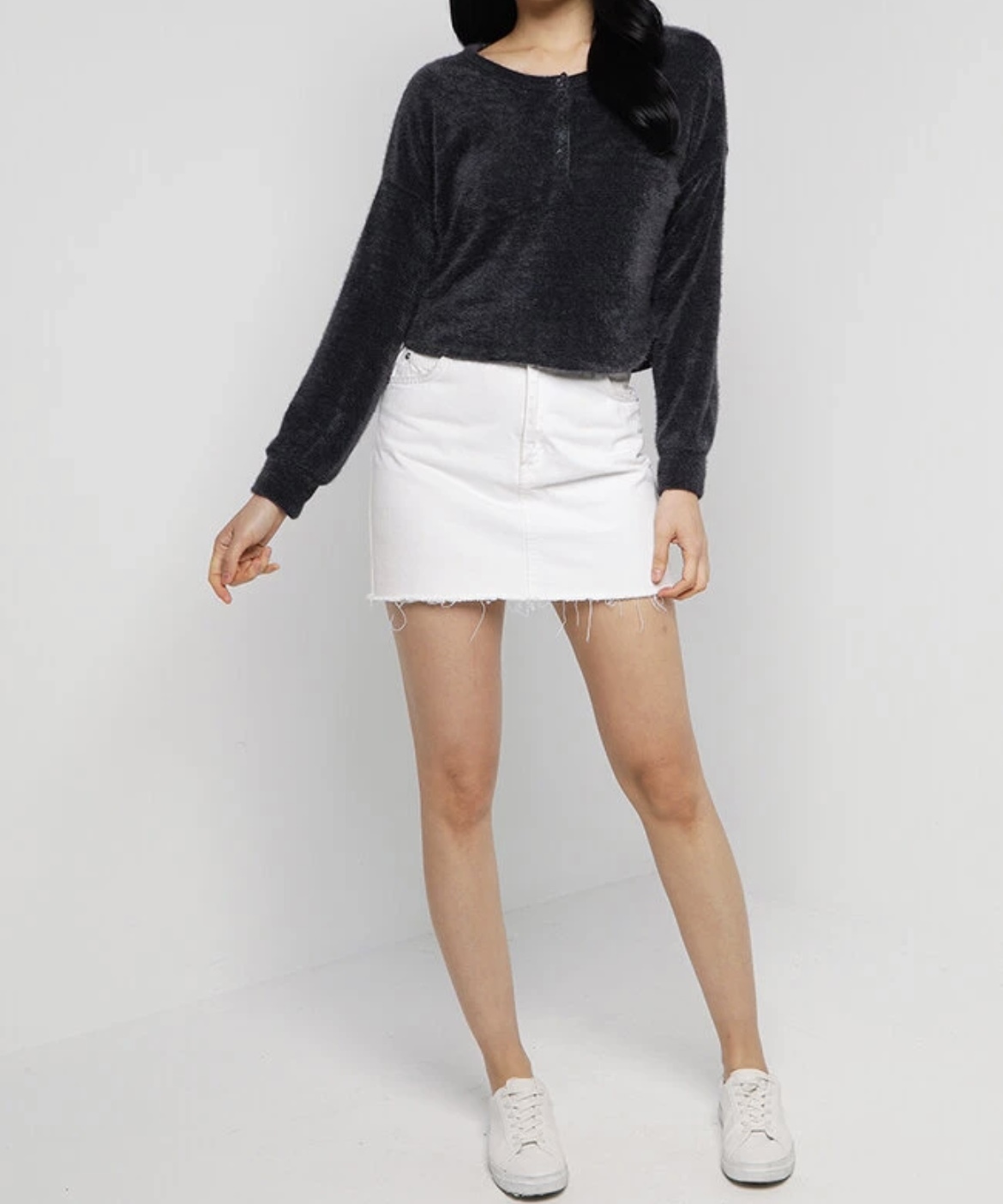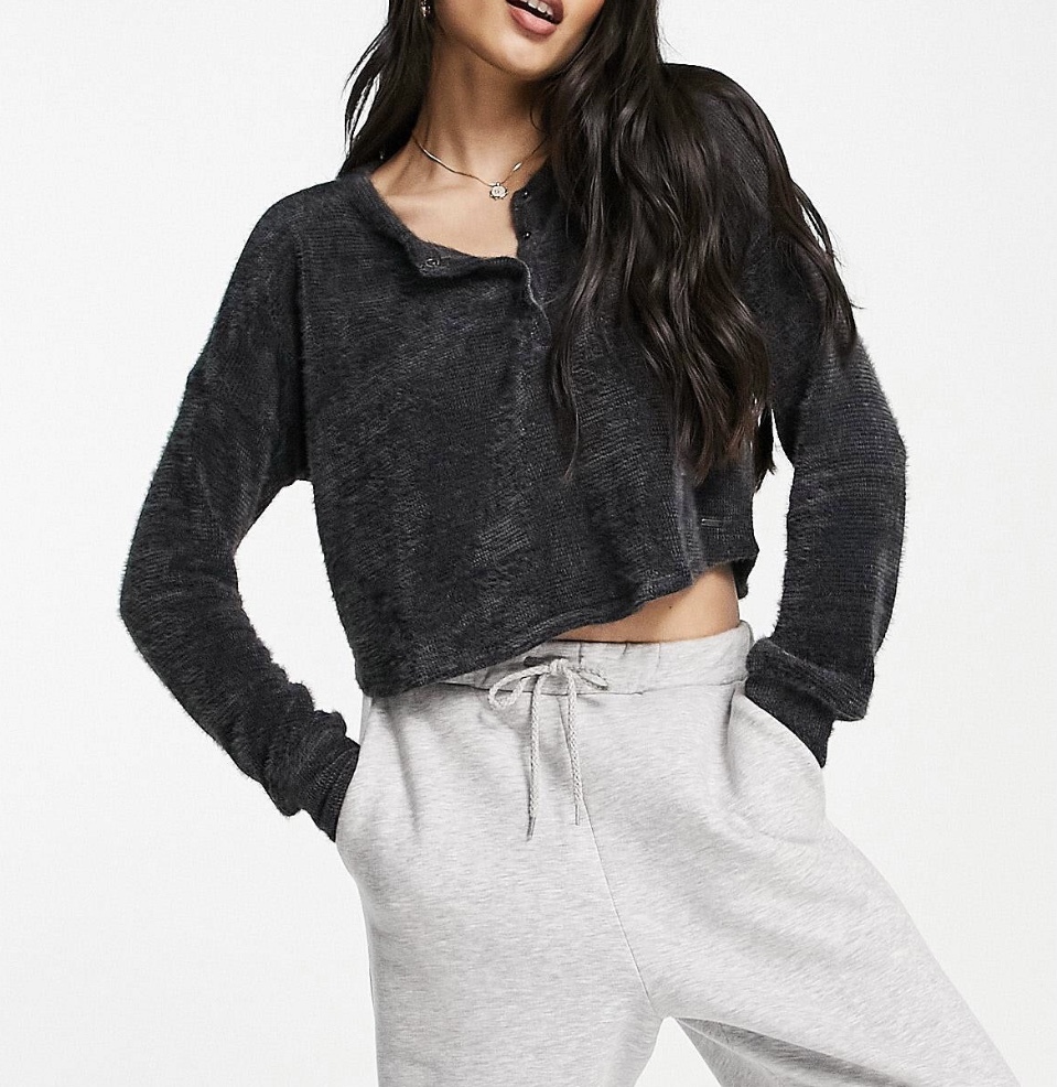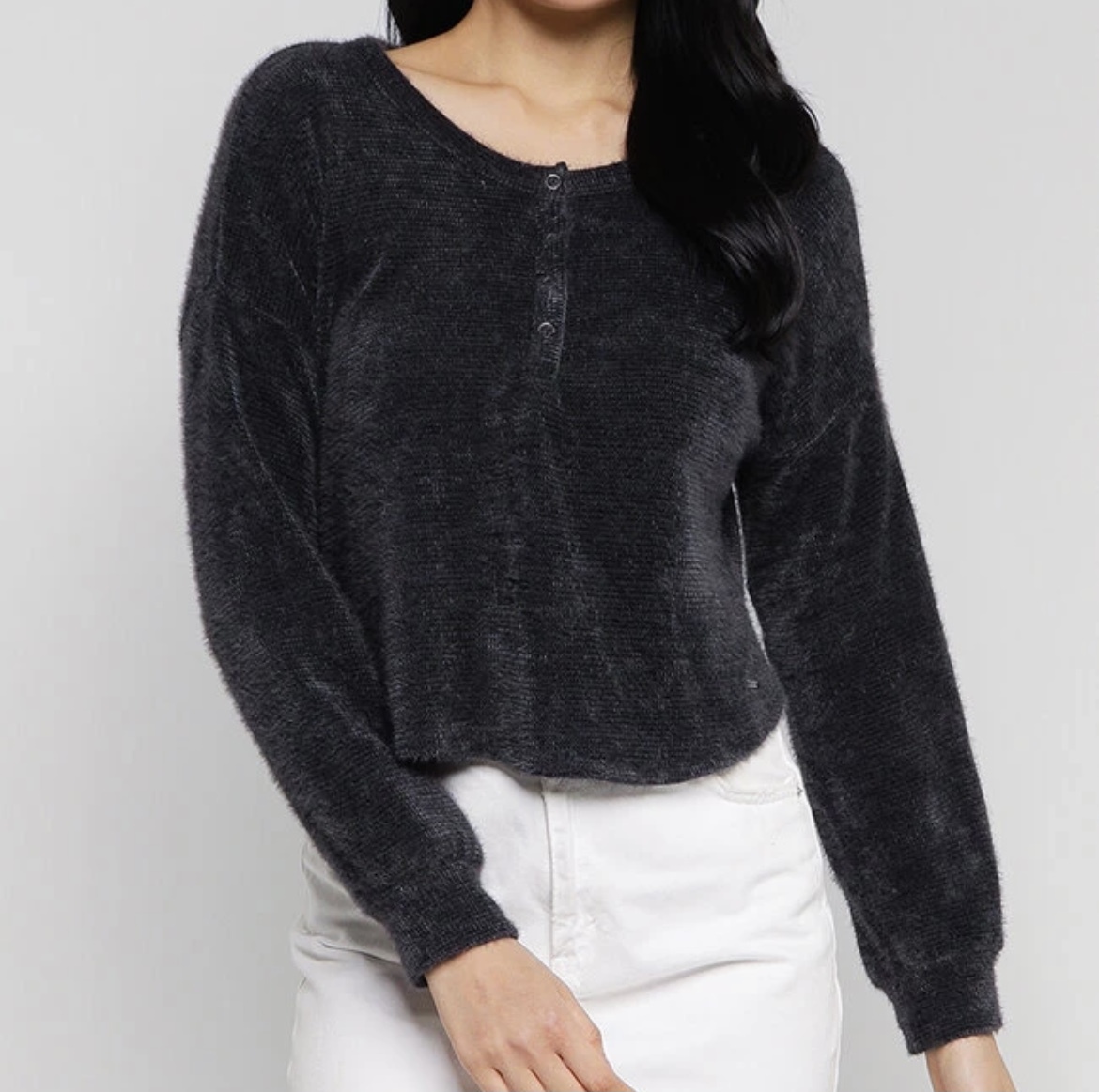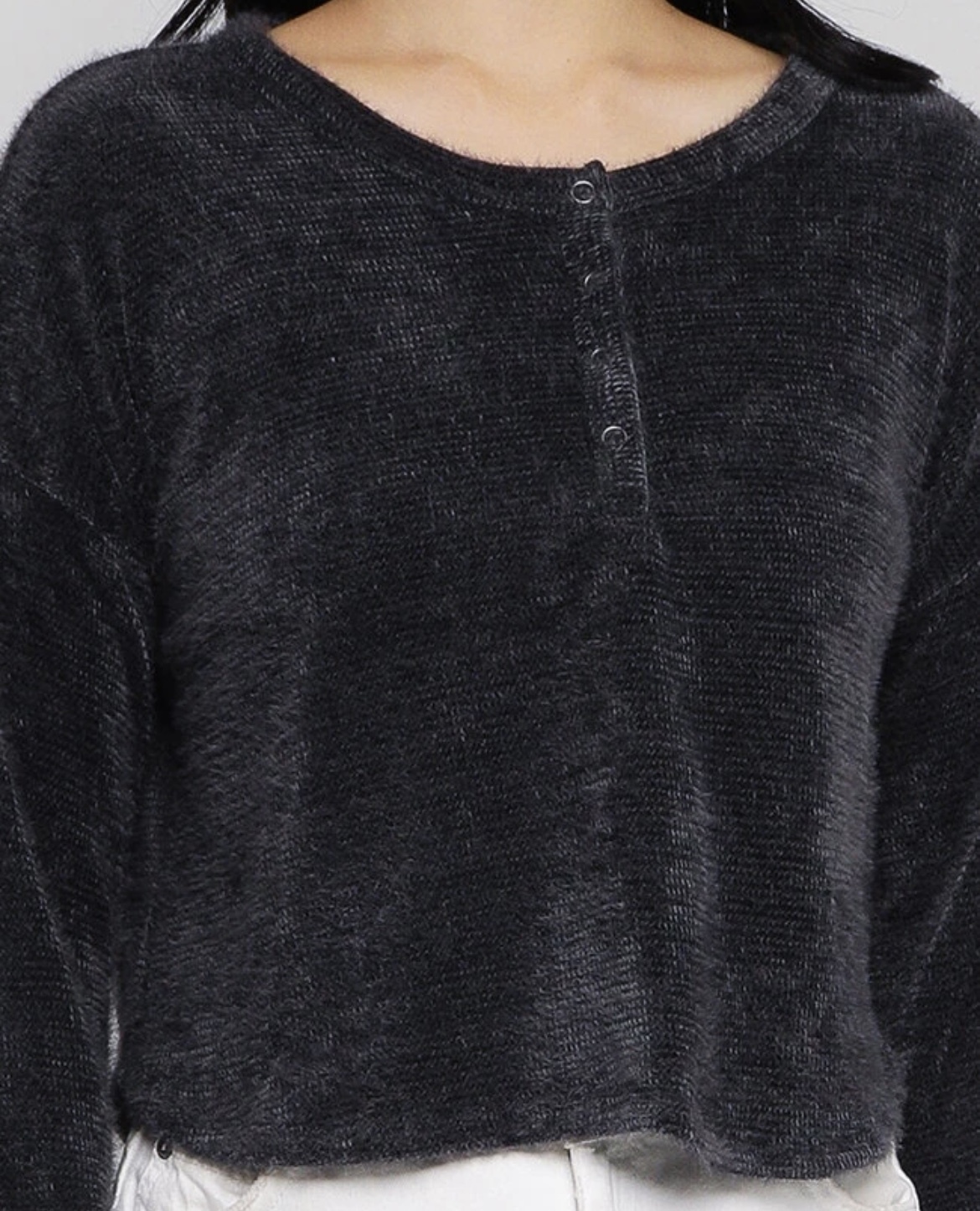 炭黑色淨色短款亨利針織款